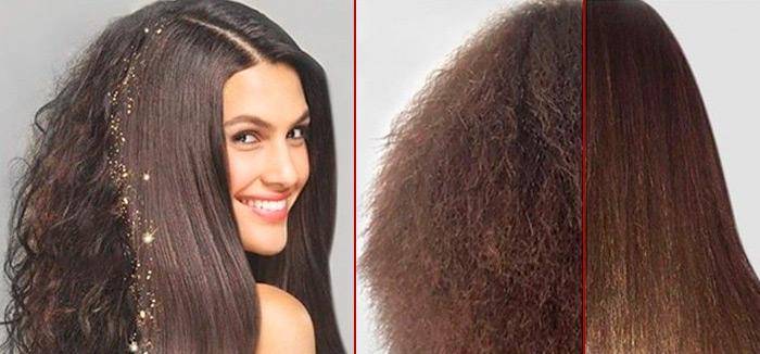 Такие процедуры применяются для кудрявых и ослабленных волос. Они направлены на их восстановление. Обладают эффектом термозащиты. Придают локонам мягкость, блеск, гладкость и шелковистость. Благодаря такому уходу волосы наполняются энергией. Эти составы препятствуют спутыванию прядей, уменьшают кудрявость и пушистость, способствуют длительному сохранению цвета.