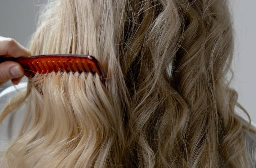 - Перед самой укладкой желательно нанести и распределить по всему объему волос мусс или пенку, расчесать от корней до самых кончиков и еще раз немного просушить.