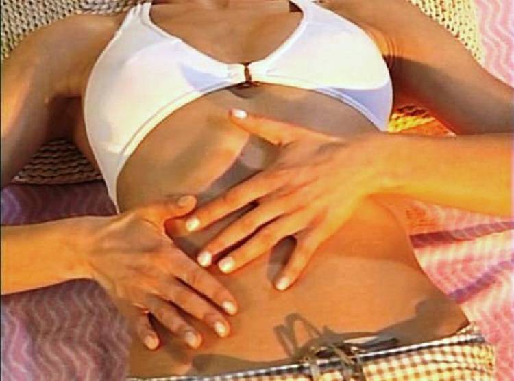 Для массажа живота необходимо лечь на спину. Нужно делать поглаживания по часовой стрелке вокруг пупка, постепенно увеличивая окружность. Затем нужно совершать движения от линии талии вниз к внутренней поверхности бедер.