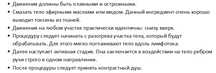 - Следовать линиям движения лимфы (лучше распечатать себе картинку, чтобы не забывать правильные направления – они разные для всех частей тела).