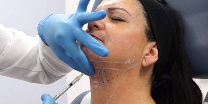 - Непосредственно перед процедурой требуется обработать кожу, сняв ороговевшие клетки и удалив частички грязи и пота. Далее надо сделать разметку на лице, куда планируется колоть фосфатидилхолин дезоксихолат или другое выбранное средство (с альтернативным действующим веществом).
