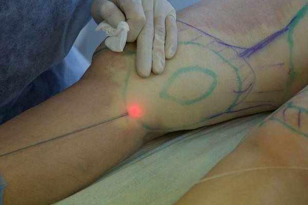 Введение раствора Кляйна, который приводит к расширению пространств между сосудами, что существенно снижает их повреждение и травматичность всей операции.