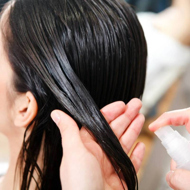 - Если вы хотите завить волосы от самых корней, весь волосяной покров обрызгайте термозащитным спреем. Если вы собираетесь завивать только часть волос, тогда увлажните кончики.