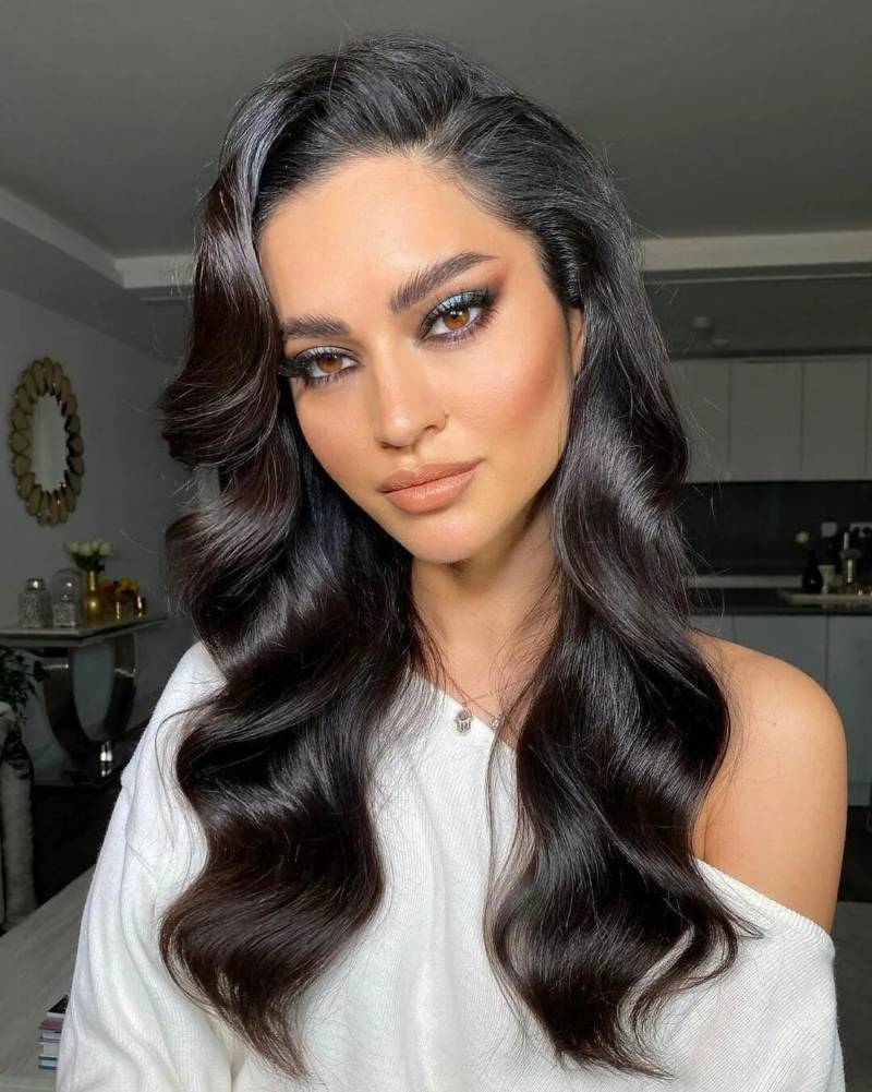 Позволить себе объемные волны могут абсолютно все женщины с волосами средней длины. Такая укладка дополнить любой стиль одежды, подчеркнет все преимущества облика и будет уместной как в неофициальной обстановке, так и на приеме.
