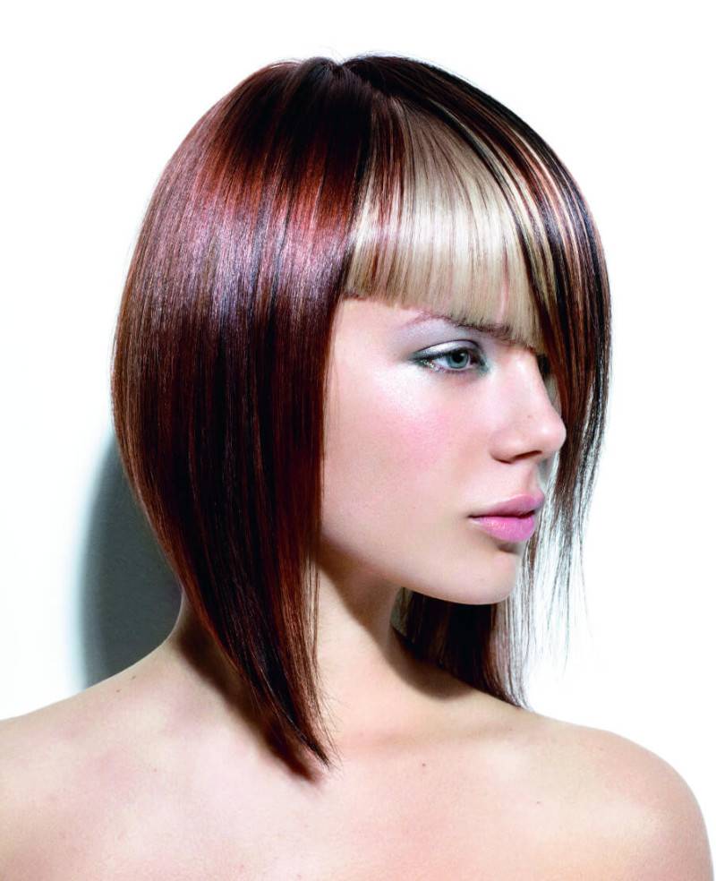 Современные гуру парикмахерского искусства предлагают несколько актуальных вариантов стрижки с косой челкой на средние волосы.