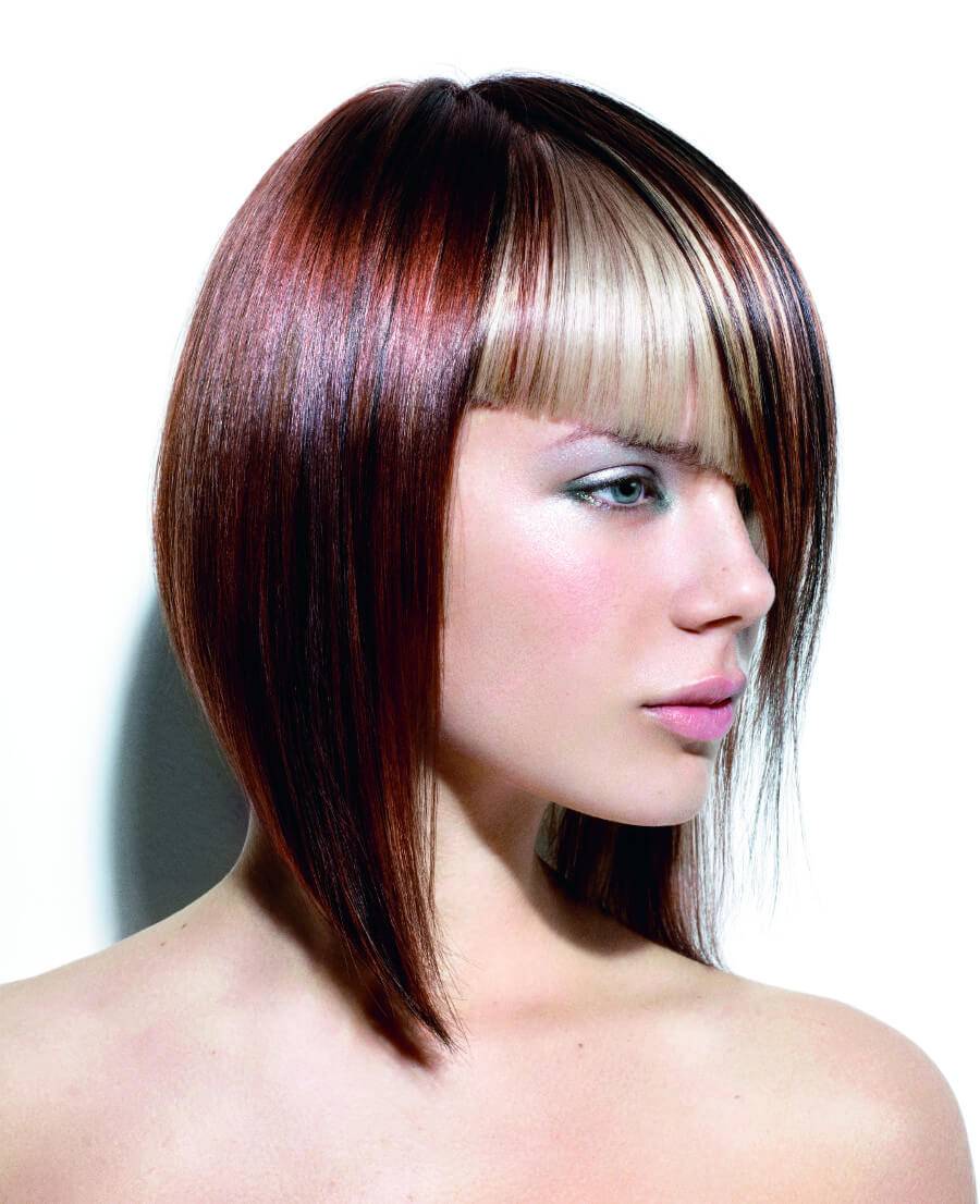 Современные гуру парикмахерского искусства предлагают несколько актуальных вариантов стрижки с косой челкой на средние волосы.