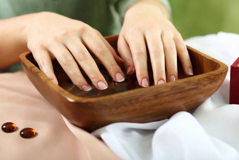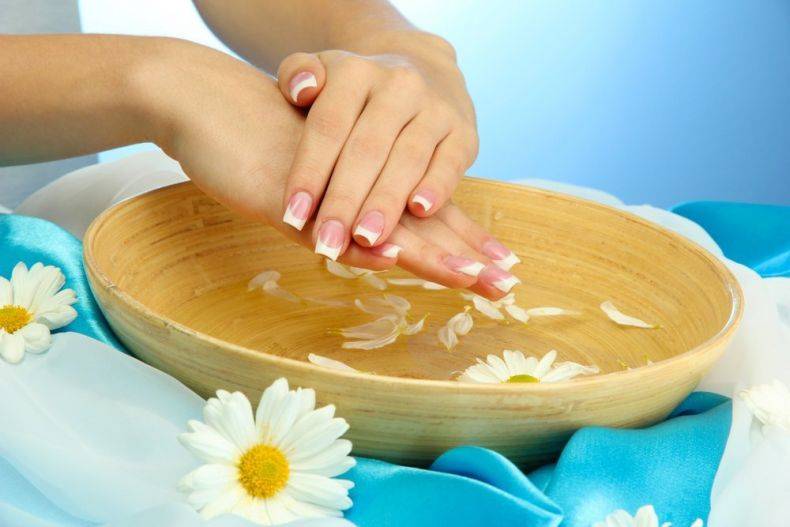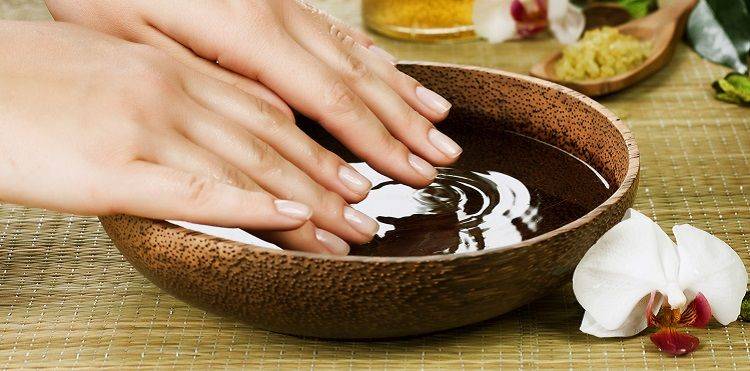 - Врачи и косметологи рекомендуют использовать такие компоненты для ванночек в домашних условиях, как морская соль, масла (кокосовое, оливковое, касторовое), картофельный отвар или даже молоко. После процедуры, необходимо просушить руки полотенцем и смазать жирным кремом.
