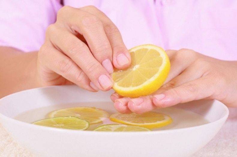 Стакан жидкости соединяют с соком 1 лимона. Погружают пальцы в состав на 25 мин., далее достают, высушивают ноготки. Процедуру выполняют 1 раз еженедельно.