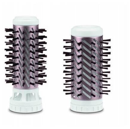 Две щетки диаметрами 40 и 50 мм с комбинированной щетиной имеют реверсное вращение, что очень удобно, особенно для новичков. В модели есть ионизационная система, которая поможет сделать волосы ухоженными как после восстанавливающих процедур.