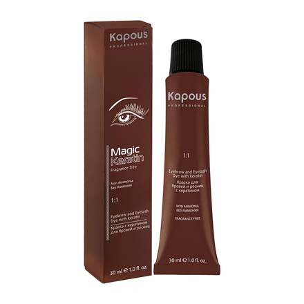 Это краска средней ценовой категории представлена одним из лучших брендов в России. В наборе есть все необходимое: краска и инструменты для окрашивания. Продукт запаян в тюбике, что исключает его преждевременное окисление. Объем флакона небольшой, всего 7 мл, но этого вполне достаточно, так как средства расходуется экономично. Удобная кисть с мелким ворсом позволяет аккуратно нанести краску и придать бровям нужную форму.