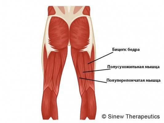 Их основная функция, разгибание ноги в коленном суставе. То есть, выполняют противоположную функцию квадрицепсам.