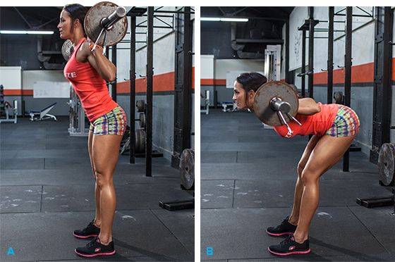 Свое название упражнение получило благодаря сходству с приветственным поклоном. Ставим ноги на ширине плеч, кладем штангу на трапецию и начинаем делать наклоны вперед, доводя корпус до параллели с полом