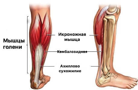Эти две мышцы, располагаются на задней части голени. Икроножная мышца занимает большую часть, и именно она составляет массивность этой части ноги. Имеет две головки: