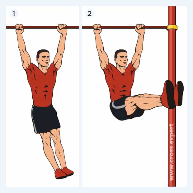Для выполнения следует повиснуть на турнике и полностью выпрямить тело. Далее требуется поднять ноги под углом в 90 градусов. Статическое положение удерживается до тех пор, пока хватает сил. 3 подходов будет вполне достаточно.