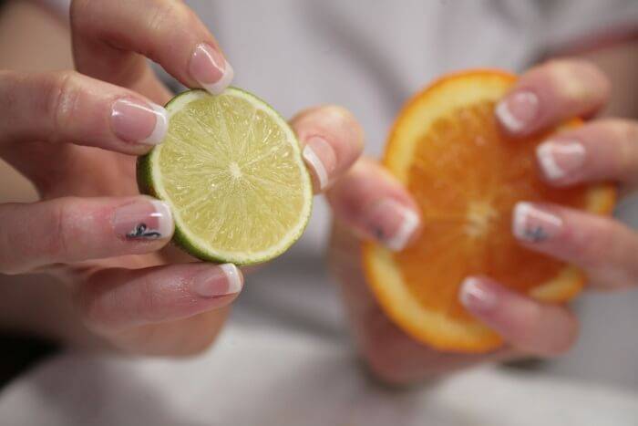 Нормализовать водный баланс, предупредить сухость ногтей, помогает витамин С. Больше всего его содержится в цитрусовых.