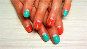 Гель-лак – это комбинированный вариант, включающий в себя свойства как геля так и лака для ногтей. Поверхность держится на ногтях намного дольше – до 3 недель. Цветовая гамма гель-лаков позволяет выбрать любой оттенок, цвета при этом отличаются насыщенностью и яркостью тонов. Для нанесения при помощи гель-лака лунного маникюра достаточно выбрать подходящую комбинацию цветов.