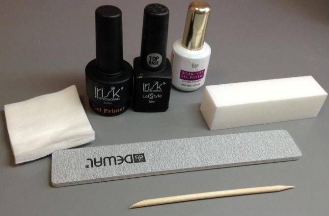 Для проведения такого особого вида маникюра как гель-лак, потребуется недюжинный набор материалов. Правда основная их часть практически не отличается от тех, что используются для обычного маникюра и всегда есть под рукой у представительниц прекрасного пола дома.