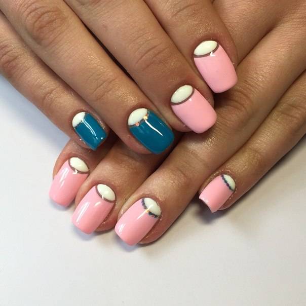 • градиентное окрашивание – густота цвета у прикорневой зоны и постепенное растворение её плотности в переходе к нежному светлому оттенку дают тот эффект сокращения длины ногтевой пластины, которая максимально приближает её к естественной. Помимо достижения нужного результата, покрытие омбре выглядит ультрамодно и стильно, не сдавая своих позиций и не покидая пьедестала лучших вариаций дизайнов современности;• использование втирки – нынешний сервис ногтевой эстетики предоставляет своим клиенткам уникальную возможность получить на ноготках подобие мехового, бархатного, кожаного покрытия. Благодаря такому элементу декора, как втирка, на ногтях можно изобразить любой узор, который поверх глянца в одной цветовой тональности будет неординарно выделяться песочной бархатистой поверхностью;• зеркальная фольга – всё так же актуальна и широко потребляема среди современной молодёжи; не перестают быть модными платиновый, золотой, коралловый, фиолетовый оттенки зеркала. Ноготки безымянных пальчиков можно декорировать росписью в чёрной или марсаловой тональности, предпочтение которым нужно отдавать исходя из оттенка основного покрытия;• маникюр со стразами – сегодня приветствуется минимализм, поэтому, если девушка надумала украсить ноготки ярким дизайном, достаточно покрыть насыщенным базовым тоном основную поверхность ногтя и разнообразить ноготок безымянного пальца пирамидой из камешков, исходящей максимально от прикорневой зоны и постепенно уменьшающейся в своей плотной выкладке по линии роста ногтя;• применение камифубиков – продолжает радовать девушек полюбившееся конфетти из вырезок фольги разноцветной окраски; в приоритете остаётся окрашивание ноготков однотонным покрытием и выделение одного или двух из них прозрачной основой с выкладкой камифубиков такой же тональности – итог получается живым и радужным;• роспись в стиле модерн – в сегодняшнем современном нейл-арте зачастую мастера используют не приевшиеся рисунки с цветочками да бабочками, а переходят к более неординарным и интересным вариациям художества. К примеру, на мятное градиентное покрытие наносятся рисунки в виде стареньких моделей машин, Эйфелевой башни, девушки с зонтиком, что ассоциирует восприятие с непревзойдённым французским манером. Подобный дизайн выглядит очень эстетично и роскошно, на него хочется смотреть вечно, рассматривая образы человечков и сооружений, живущих на ноготках своей жизнью.
