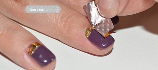 - Если фольга не перебилась аккуратно, остались погрешности – нанесите на лунку и край ногтя ещё раз клей. И повторите манипуляции.