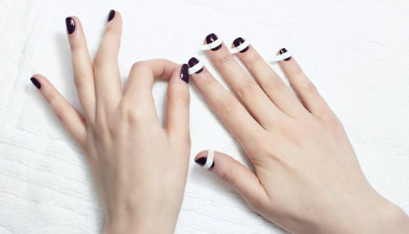 Обратный лунный маникюр визуально удлиняет ногти, делает руки более утончёнными