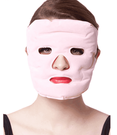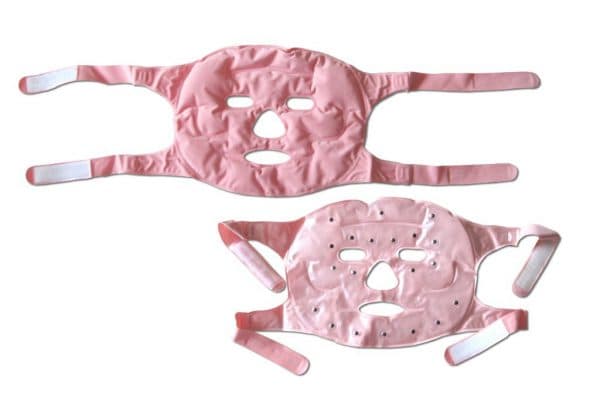 Изготовлена из ткани, внутри нее имеются магниты и жидкий гель, который содержит селен и турмалин. Закрепляется на затылке с помощью специальных липучек. Благодаря гелю, которым заполнена маска, кожный покров лица охлаждается и происходит очищение клеток кожи. Приспособление питает эпидермис кислородом и микроэлементами.