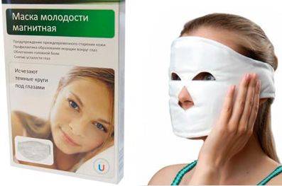 Внутри расположены пластинки, которые оказывают действие на определенные точки. Главная задача магнитной маски молодости для лица заключается в снятии усталости, уменьшении морщинок, избавлении синюшных кругов под глазами. Наносить ее можно на пару часов каждый день или оставлять на ночь. Маска снимает отеки, повышает тонус кожи и придает ей сияние.
