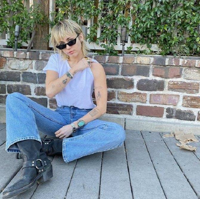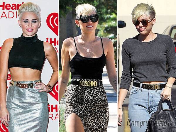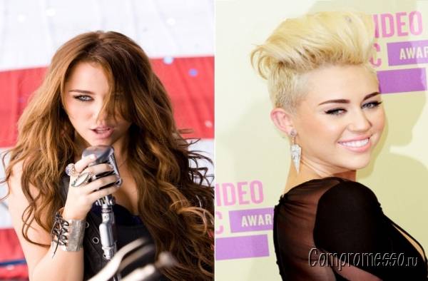 Майли Сайрус изменила не только стиль нарядов, но и прическу. Длинные локоны сменила стрижка «под мальчика», выкрашенная в блонд. Отметим, что актриса уже успела побывать шатенкой и брюнеткой.