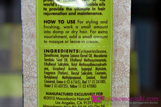 Что обещает производитель: Macadamia Healing Oil Treatment — наше омолаживающее целебное масло является терапевтическим средством, которое идеально подходит для всех типов волос и особенно эффективно для сухих, поврежденных волос: