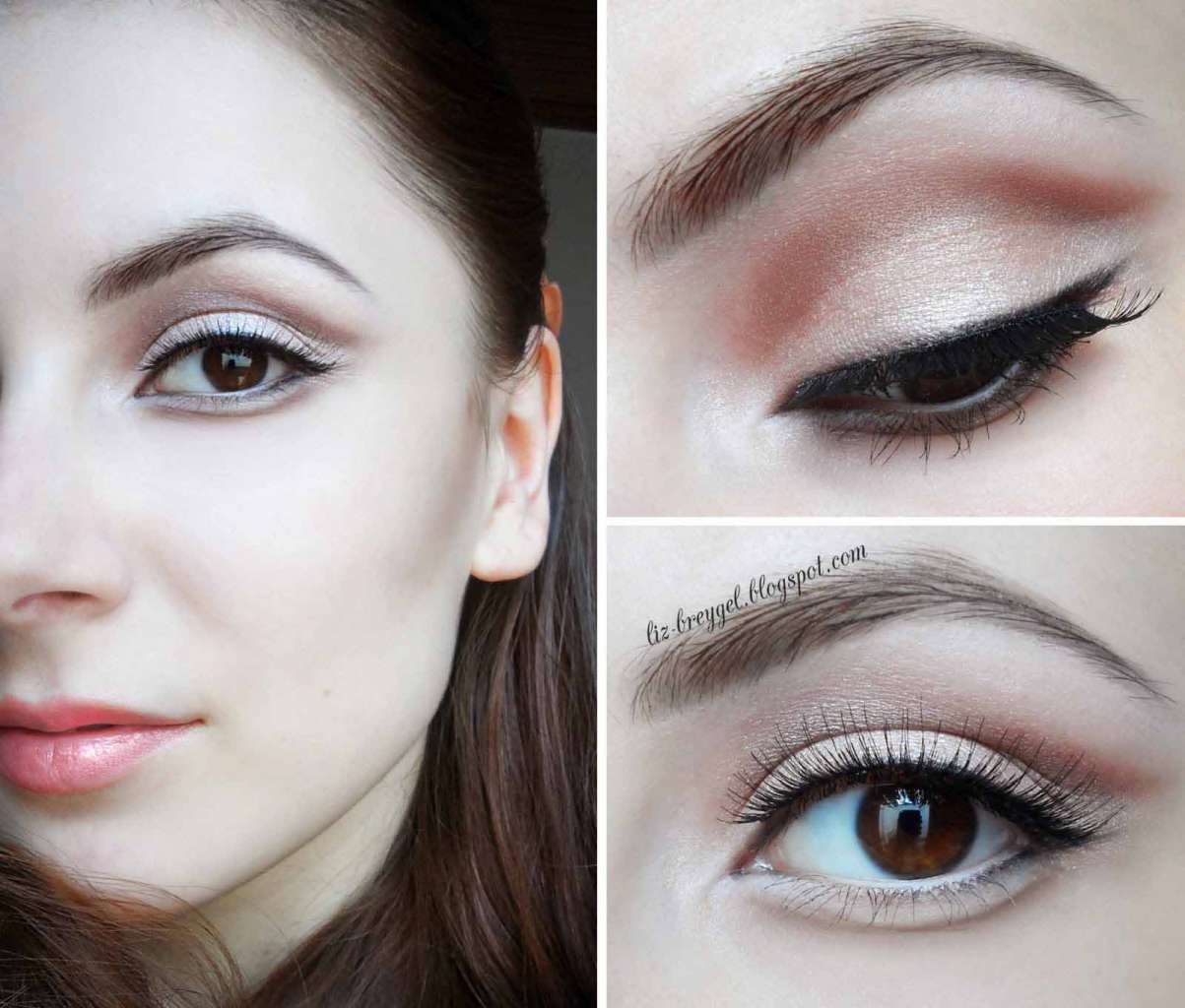 В качестве основы для стрелок можно выбирать перламутровые тени в светлых коричневых, серых, бежевых и розовых оттенках. Хорошо будут смотреться стрелочки на веках с телесными тенями и прозрачным шиммером.