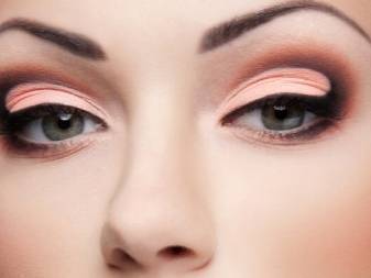Всё зависит от того, какие будут использованы тени. Если взять золотистые, беж, неброские розовые, то вот вам дневной макияж, хотя и очень выразительный. Чтобы не выглядеть вычурно, карандаш необходимо взять серый либо коричневый. И с прорисовкой усердствовать не стоит, все тона – в меру. Образ рекомендуется завершить чёрной тушью для ресниц и неброской помадой.