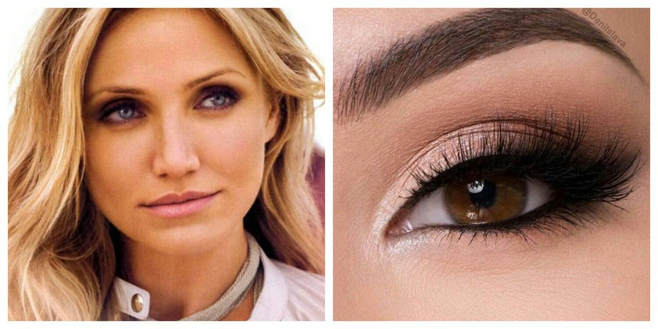 Хорошо на таких девушках смотрится палитра теней под цвет глаз, ну или универсальный серый цвет. Если же вы планируете создать более смелый и контрастный образ, в таком случае рекомендуется наносить каштановые, шоколадные или золотистые цвета.