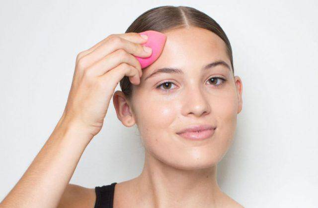 - Для нанесения возьмём совсем небольшое количество средства. Лучше всего перенести его на кожу с помощью мягкого и влажного спонжика в форме яйца.
