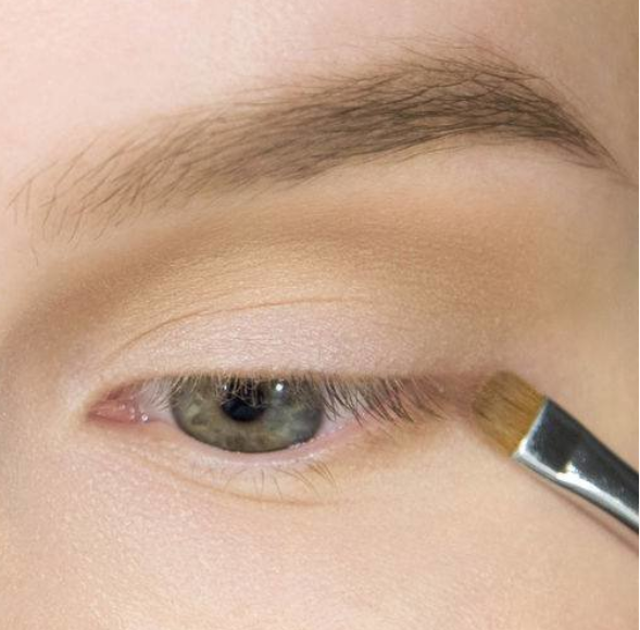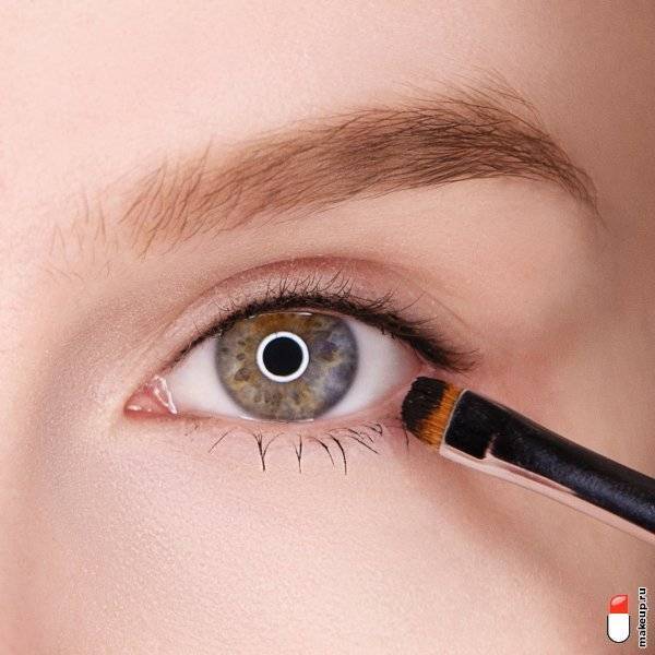 При помощи плоской кисти подчеркните внешние уголки нижних век тенями того же оттенка – нюдовыми или коричневыми.