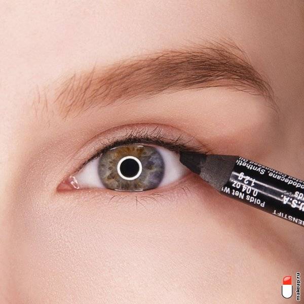 Возможно, в процессе прокрашивания карандаш отпечатается на нижней слизистой (что совершенно нормально, ведь мы моргаем). На финальном этапе макияжа просто сотрите его ватной палочкой. К этому моменту карандаш высохнет на верхнем веке и закрепится.