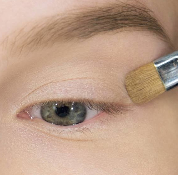 - Выберите основной цвет макияжа, например, коричневый, и нанесите его вдоль орбитальной границы. Нюдовые и светло-коричневые тени естественно оттенят глаза.
