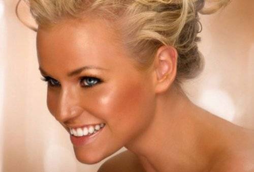 1. Умываем лицо кипячёной или минеральной водой. Обработав кожу тоником, наносим лёгкий слой тонального средства, чтобы выровнять цвет лица. Теперь можно румянами подчеркнуть линию скул. Румяна в юном возрасте лучше всего брать розового либо персикового цвета.