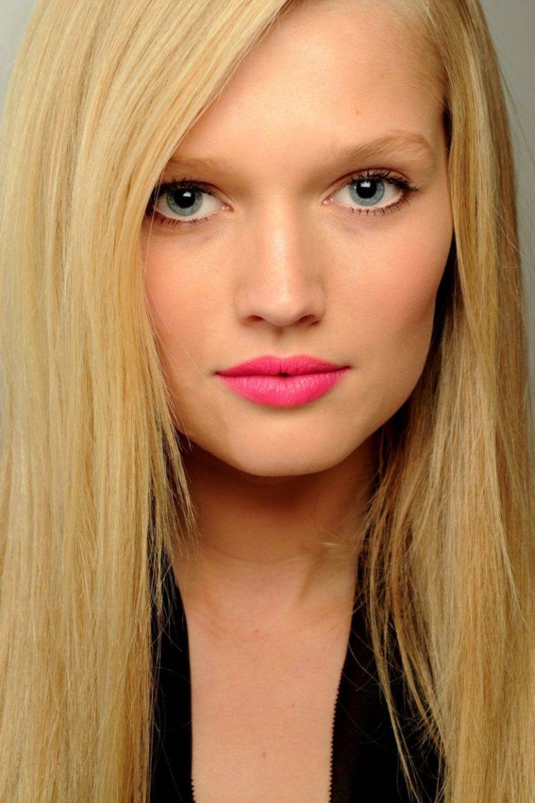 - Вопреки некоторым стереотипам о блондинках, сильно подчеркнутый розовый – тоже не лучшее решение, как при выборе помады, так и теней для век. Нежная воздушная блондинка со светлыми волосами и кожей будет очень нелепо смотреться, если переборщить с розовым, особенно в интенсивном оттенке.