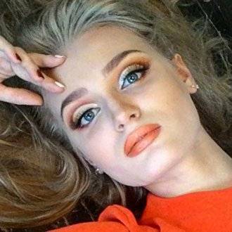 - Губам достаточно яркой персиково-коралловой помады нежного оттенка.