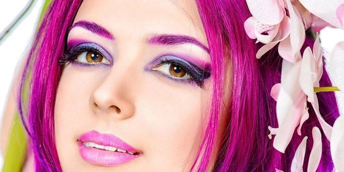 При желании использовать в макияже те же цвета, что на волосах, следите, чтобы они совпадали тон в тон. Что касается туши или выделения губ, – их можно использовать при создании вечернего мейка, чтобы не переборщить с эффектом и не утяжелить образ.