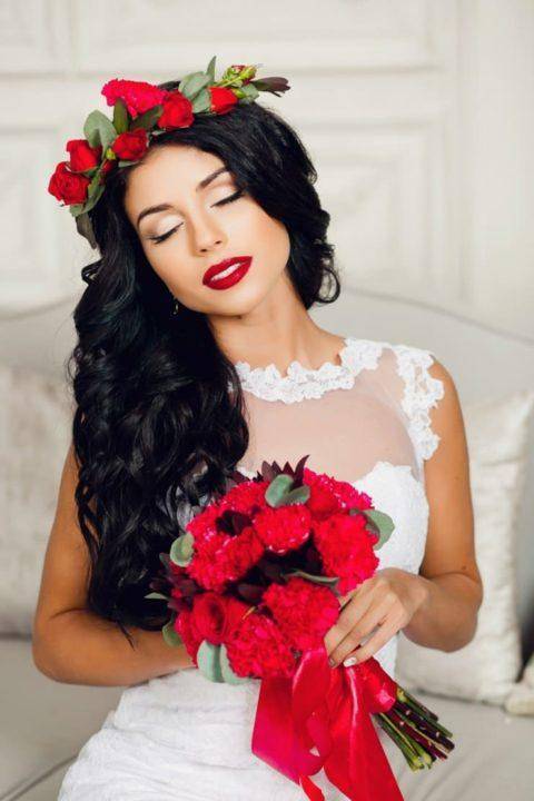 Все, что нужно – это спрятать недостатки и показать естественную красоту. Чрезмерное применение средств насыщенного цвета придаст темноволосой девушке неприглядный вид, визуально состарят. Это не надо ни одной невесте.
