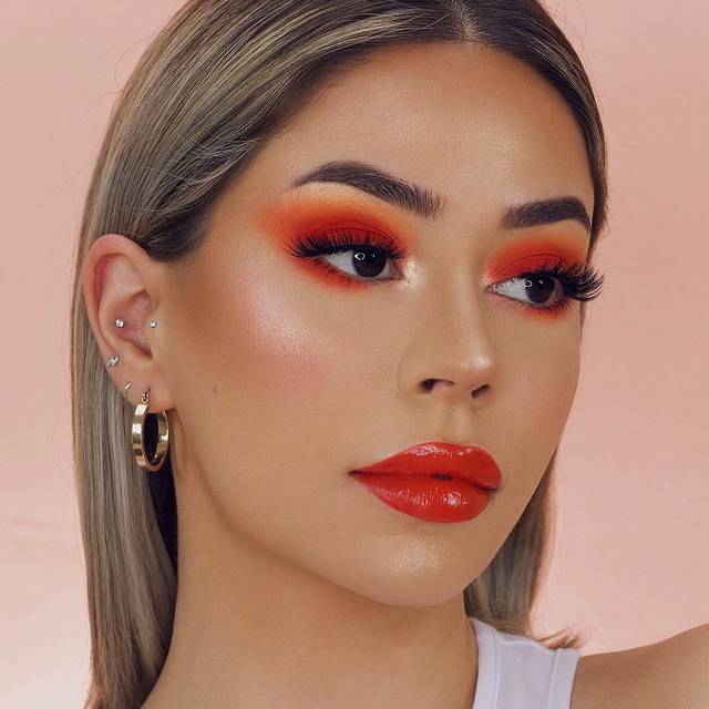 Коралловую помаду, возможно, тяжелее всего сочетать с другой декоративной косметикой, но этот цвет очень хорошо подходит к карим глазам.