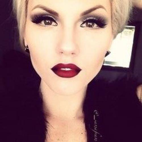 Яркой рыжуле выбирать красные губы, пожалуй, лучше только для вечернего образа. Добавив коричневые стрелки к голубым глазам, вы получите отличный вамп-образ. Вишнёвый оттенок помады в этом случае предпочтительнее.