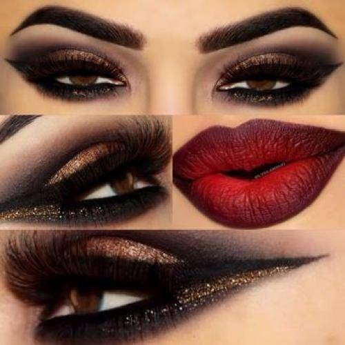 - Если речь идет о вечернем макияже, то идеальным сопровождением для красной помады будут: