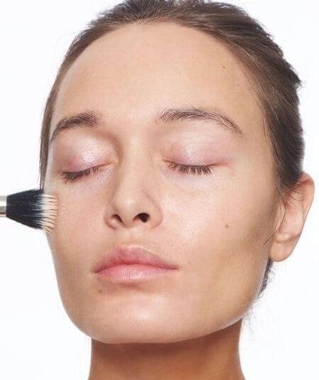 При отсутствии основы, и если нет желания ее приобретать, можно немного припудрить лицо с помощью плоской кисти.