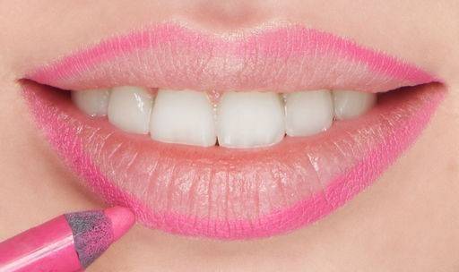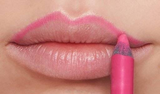 Используя контурный карандаш, прорисовывается граница уст. Карандаш должен быть в меру мягким и хорошо заточенным, а его оттенок на несколько тонов темнее цвета кожи. С его помощью аккуратно прорисовывается контур.
