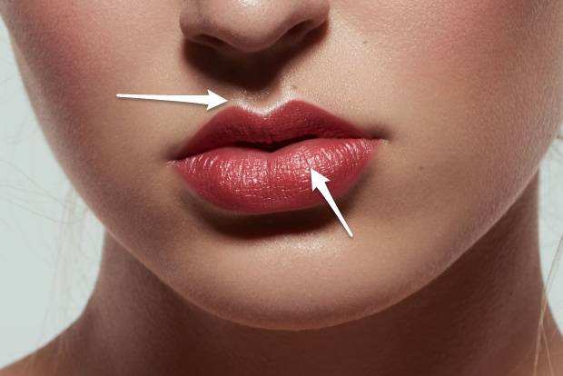При значительном увеличении верхней губы визуально увеличивается нос. При увеличении нижней части рта, визуально уменьшается подбородок