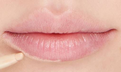 - Нанесите на губы тональную основу, чтобы таким образом сровнять тон губ с тоном лица.