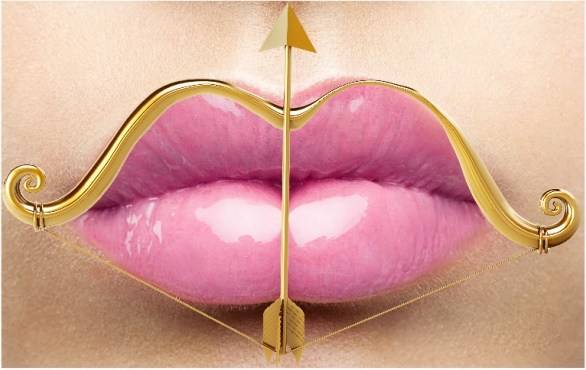 Начинать необходимо с середины верхней губы. Ориентироваться можно на среднюю линию носа, если он симметричный и ровный. В первую очередь прорисовывается так называемый бантик. Затем необходимо провести аккуратную линию от уголков к вершине.