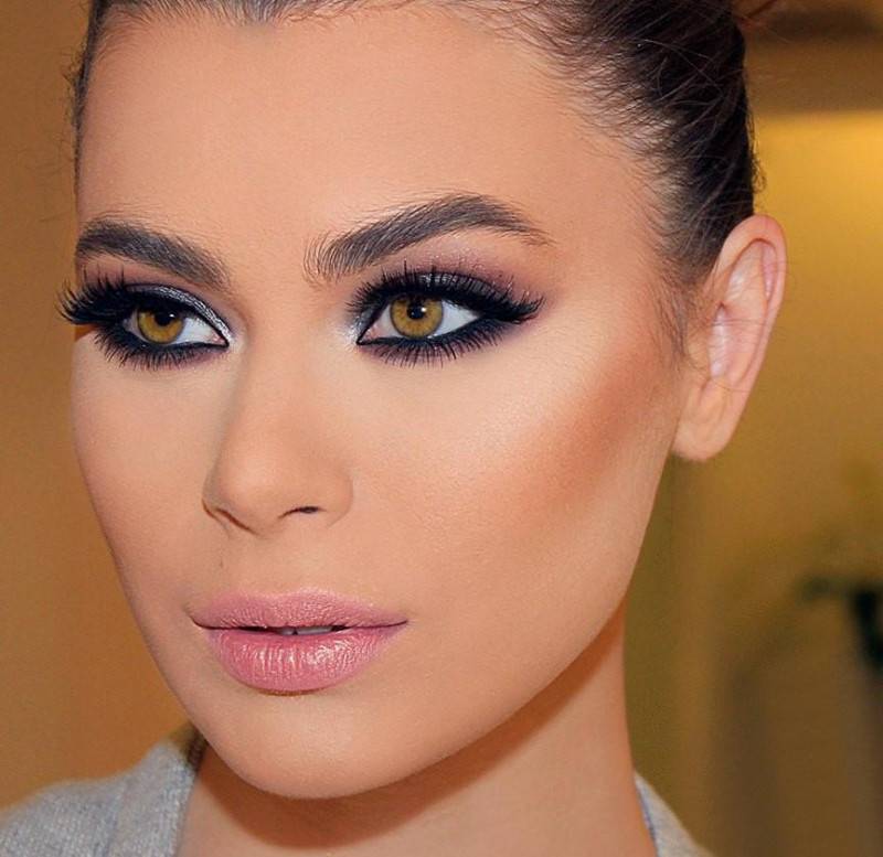 Нежным блондинкам подойдёт серый и пепельный, а также нежные розовые румяна. Стоит использовать максимально естественный цвет и выбирать холодные оттенки. Смуглокожим девушкам праздничный макияж можно дополнить легким перламутром.