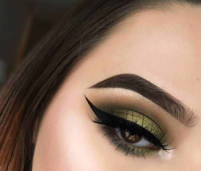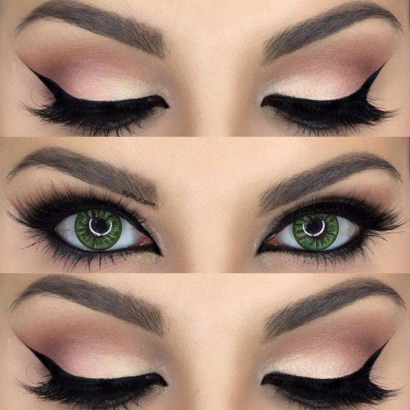 Для светло-зеленой радужки не нужно подбирать насыщенные густые тона зеленой палитры. Их лучше заменить песочным оттенком, золотистым или бежевым. Чтобы придать яркость макияжу, можно сделать межресничную подводку и использовать тушь для ресниц.
